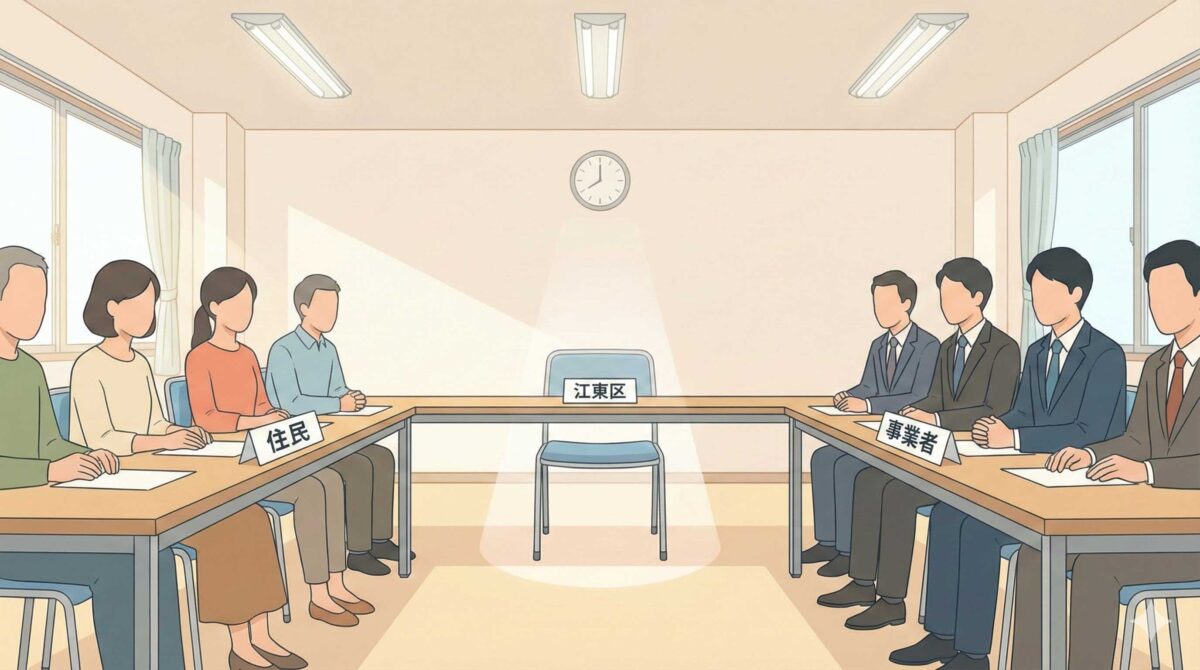 この構造を一層深刻にしているのが、要綱を作った江東区の所管部署が説明会に出席していないという事実です。