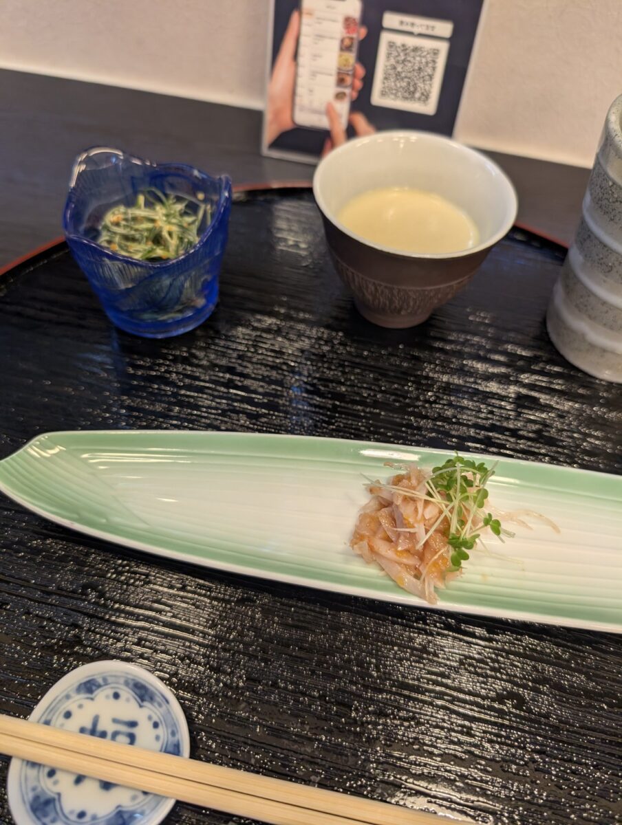 確かにその通りの美味しいブリで、梅クラゲとオカヒジキにチーズ風味のクリーミーな茶碗蒸しという凝った前菜付きでボリュームも満点でした。