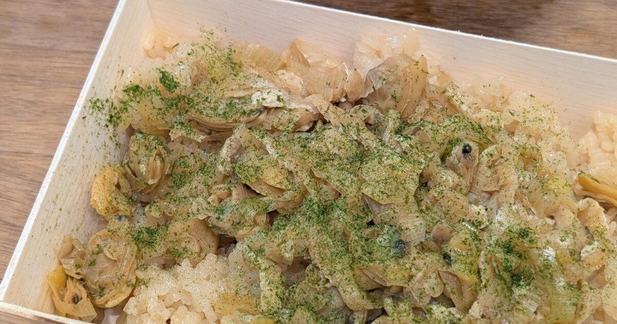 見た目も美しい。 ご飯はあっさりめであさりの旨みがしっかり感じられる具材がたっぷり。満足感のある一品でした。